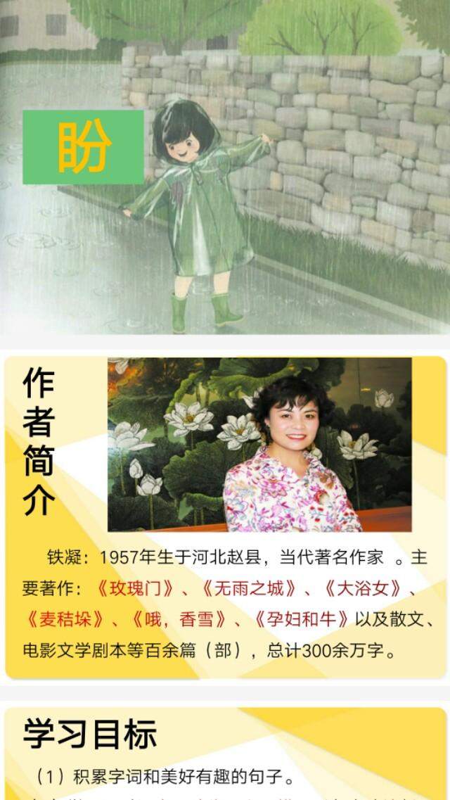 5.结合小说内容,说说“我”是个怎样的人?小说通过“我”期盼下雨、穿上新雨衣的故事,生动形象地描述了一个天真活泼、情感丰富、心地善良、孝顺而可爱的女孩形象。