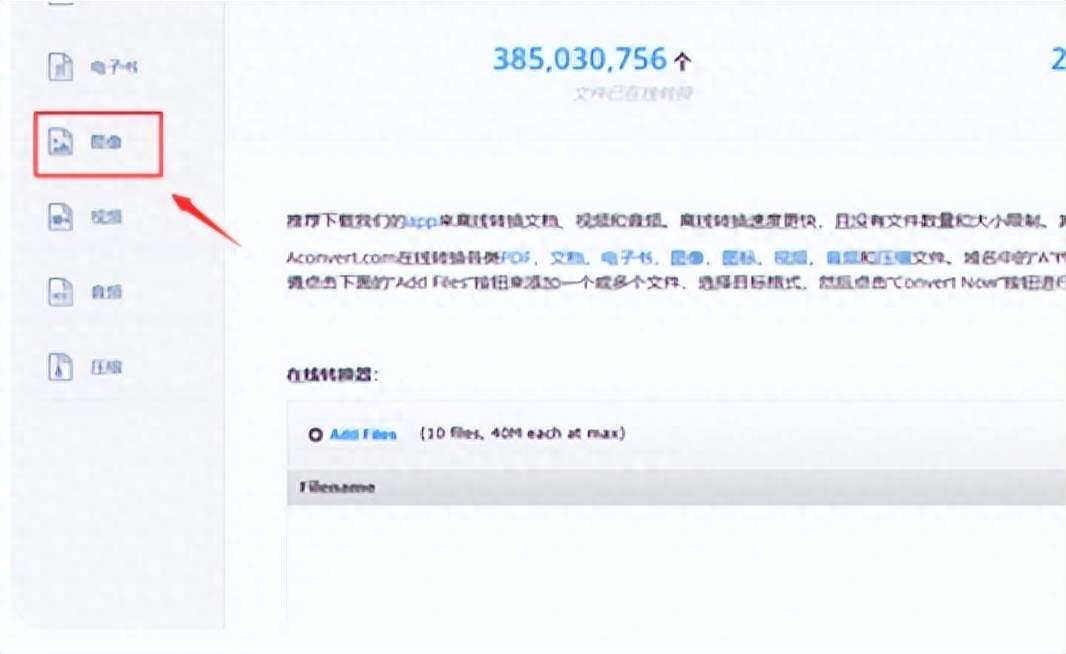 步骤1、在我们的电脑上搜索并打开aconvert在线转换网站,在网站的首页,找到图像的选项,直接点击进去;