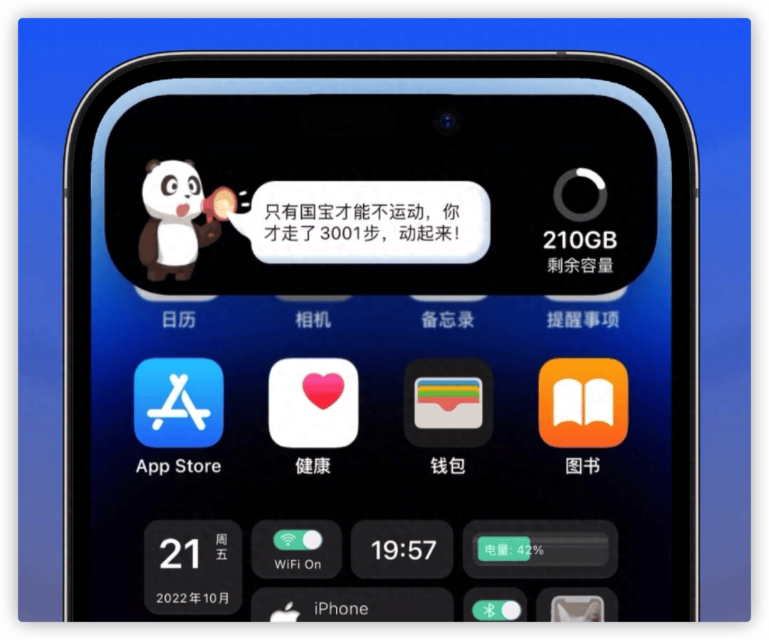 以及在灵动岛区域养宠物,并实时显示步数和剩余存储容量。