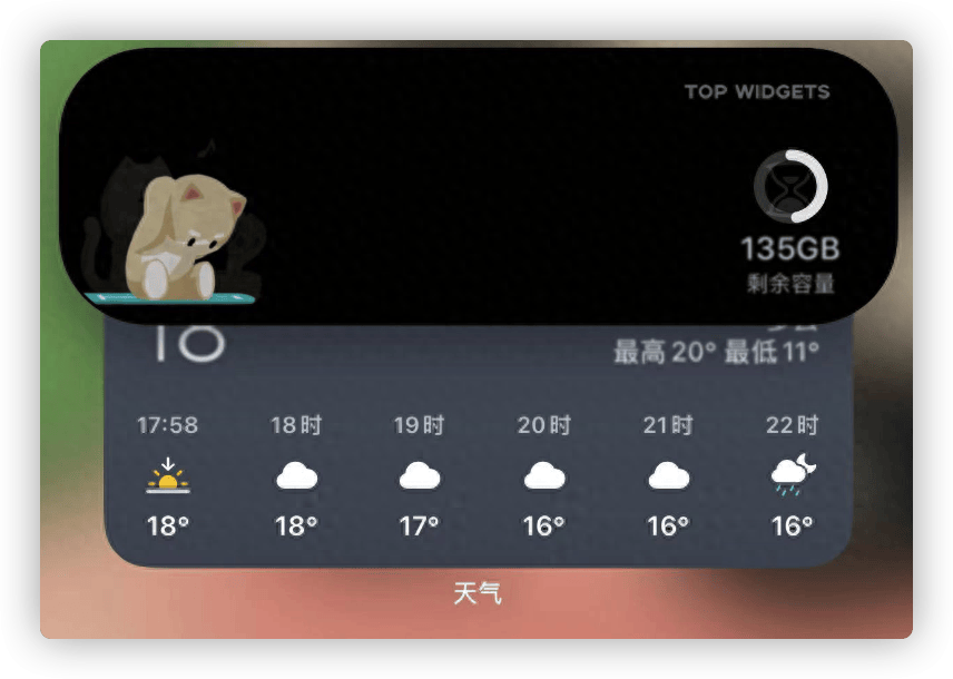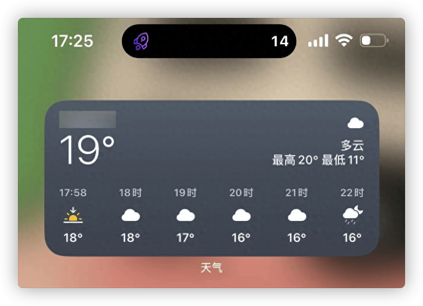 每次长按灵动岛后,右侧会随机显示包括天气、实时步数和剩余存储容量等信息。