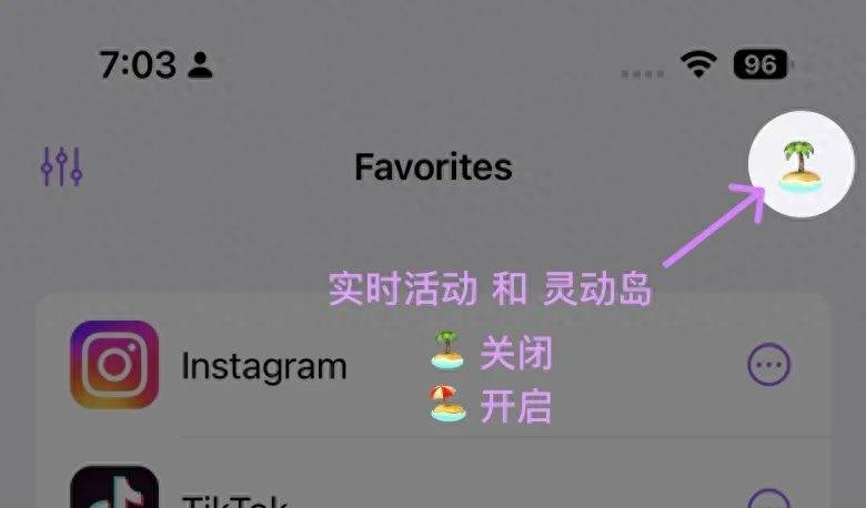 选择并添加后,即可点击右上角的小岛图标,进入实时活动和灵动岛的设置界面。