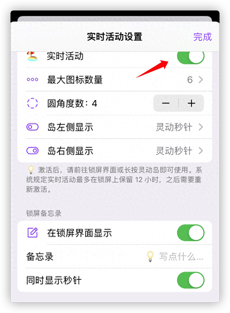 需要注意的是,灵动岛和实时活动功能最多能够在锁屏上保留 12 小时,之后就要重新进行设置。