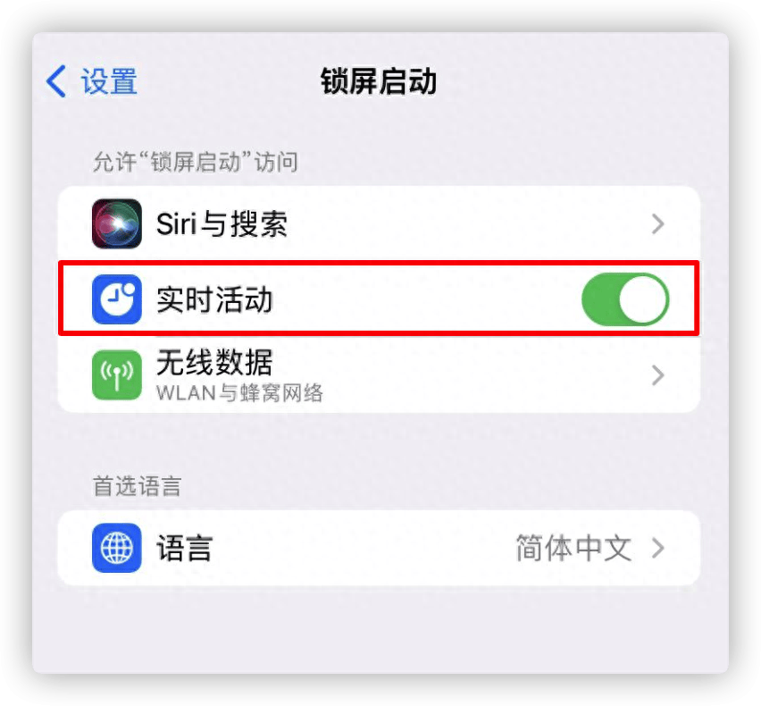 首先是锁屏启动 App 在适配灵动岛后推出的新功能,我们需要进入设置,将 App 的「实时活动」功能开启。