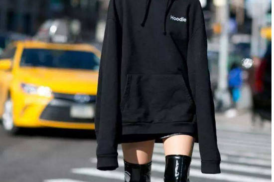 连帽卫衣搭配长筒靴,平常穿的机会特别多,搭配起来简单又时尚。