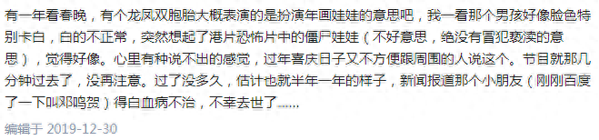这段言论也让网友们感到细思恐极,再去看春晚的回放,都觉得如此,也有越来越多的人都来迎合这个言论,如果这是真的那该有多好,我们的“年画娃娃”现在应该在享福吧……