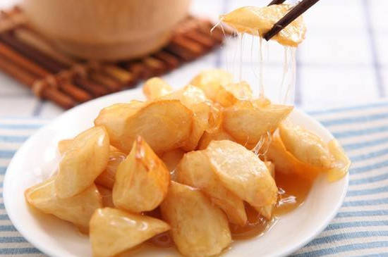 毛山药是脆的,不论是炒着吃还是煮汤都是脆的,是一道爽口的菜,例如拔丝山药香甜酥脆,将毛山药清洗干净去皮切成棱块状,晾干水分后沾上淀粉在油锅中炸至金黄色捞出,再倒入糖液中翻炒均匀起锅即可食用。