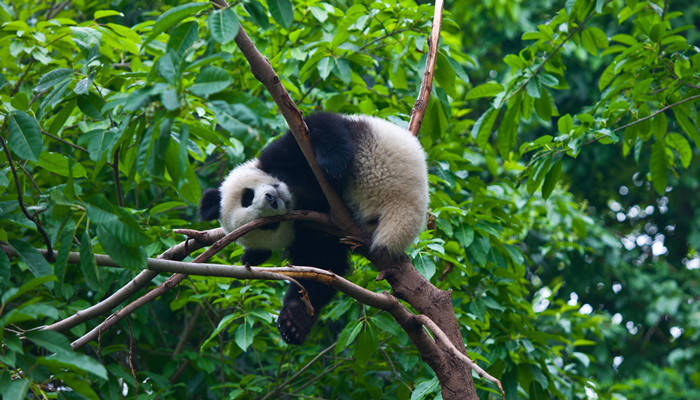 生活在海拔2600到3500米的茂密竹林里,那里常年空气稀薄,云雾缭绕,气温低于20℃。有充足的竹子,地形和水源的分布利于该物种建巢藏身和哺育幼仔。大熊猫善于爬树,也爱嬉戏。爬树的行为一般是临近求婚期,或逃避危险,或彼此相遇时弱者借以回避强者的一种方式。