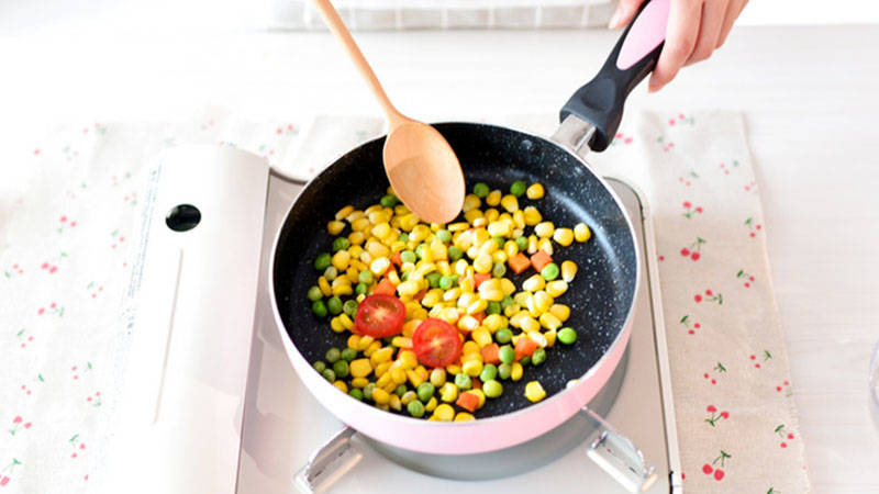 2、使用 不粘锅烹调时应用耐热的塑料或木制的锅铲,避免尖锐的铲具损坏表面涂层。