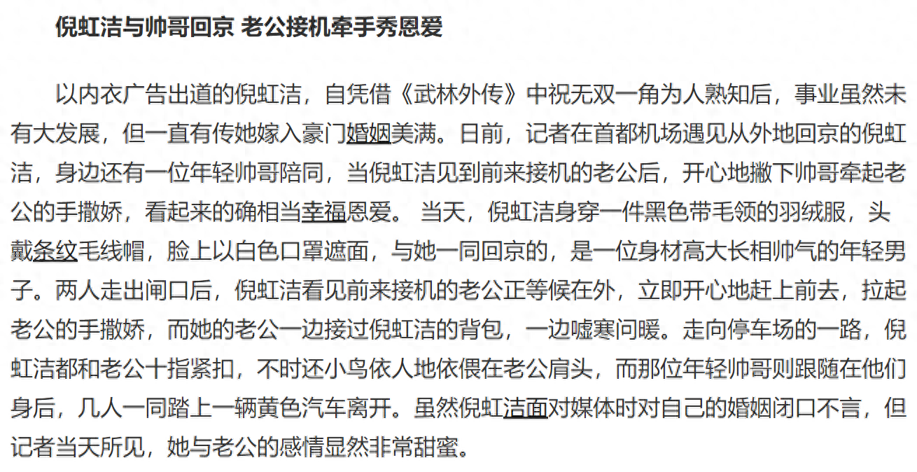 男方的身份与年龄都与她老公对得上,但她始终未承认结婚一事,可见倪虹洁确实是有意隐瞒了。