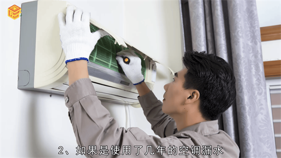 2、如果是使用了几年的空调漏水,可能是长时间没有进行清洁,空调过滤网上积累灰尘过多,这时空调蒸发器上凝结出的水珠被灰尘污渍阻碍就不能进入到水槽中,而是直接滴落到水槽外,水就会通过空调缝隙渗透出来。