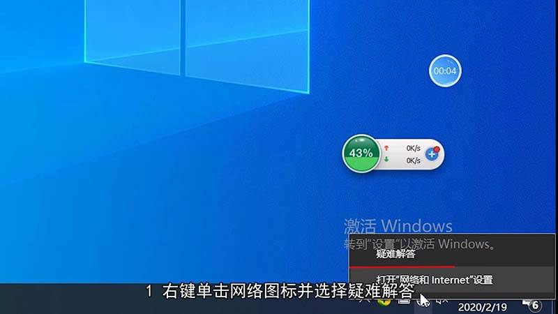 1、右键单击网络图标并选择疑难解答,消息将自动显示;