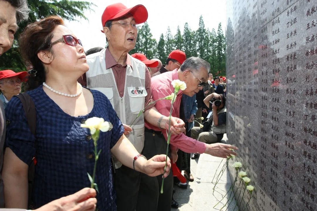 2009年5月27日,参加解放上海战役的老首长及后人重访宝山战地,瞻仰《热血丰碑——解放上海烈士英名墙》。