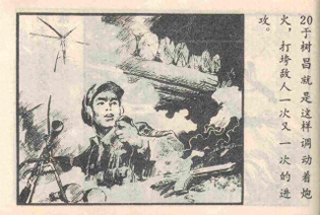 1953年6月29日晚,志愿军23军73师218团通信连步话机员于树昌所在部队为了配合金城主攻方向作战,对无名高地之敌进行反击。在坚守阵地的其他战友全部阵亡后,于树昌调动炮火,打垮了敌人一次又一次的反扑。在敌人包围了他所在地堡,阵地就要失守的危急时刻,于树昌通过步话机发出呼喊:“为了胜利,向我开炮!”随后,他砸碎步话机,拉响最后一颗手榴弹,冲向敌人,牺牲时年仅22岁。