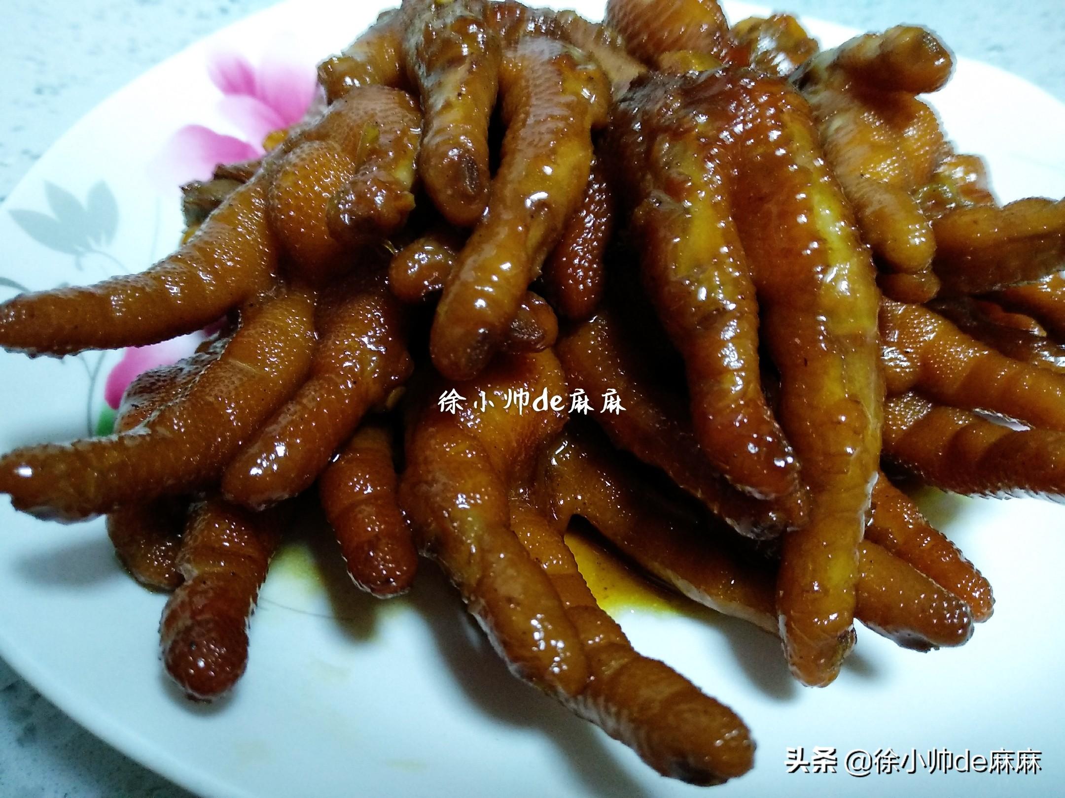 3、锅内放油,放入冰糖,中小火将冰糖炒化,炒成糖色。将鸡爪、生姜以及小米辣放入,翻炒上色。加入一勺生抽和半勺陈醋,少许胡椒粉继续翻炒均匀。倒入没过鸡爪的热水,中小火慢炖10分钟。看到汤汁少一半,放入盐以及葱白继续焖煮,和鸡爪焖煮到融化即可。