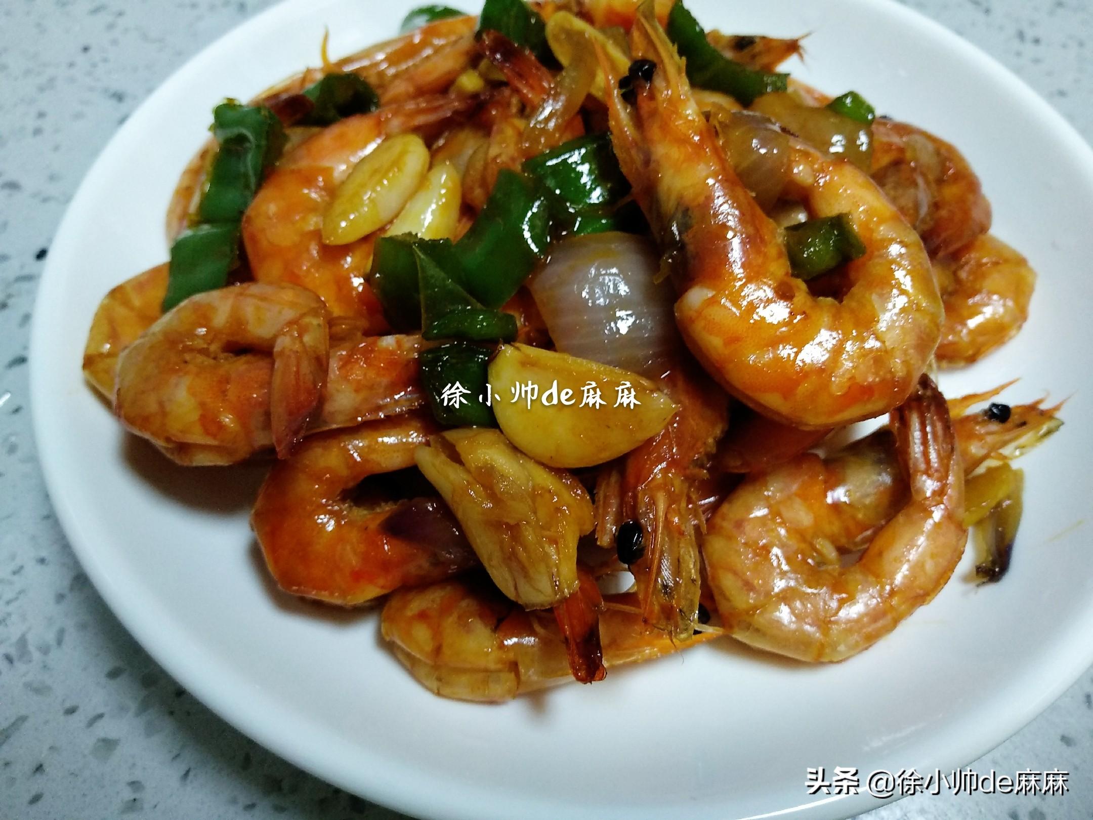 1、食材准备:虾洗净,去虾线,剪掉虾须;生姜切片,蒜粒拍扁,青椒切碎,洋葱切碎。