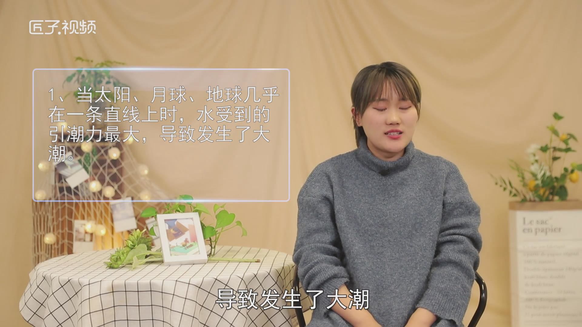 1、当太阳、月球、地球几乎在一条直线上时,水受到的引潮力最大,导致发生了大潮。