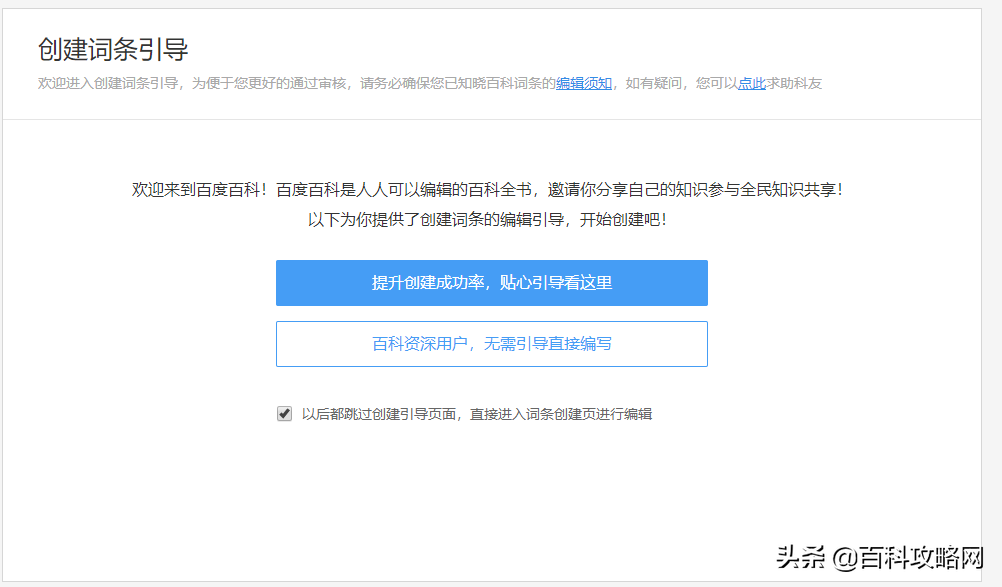 百科资深用户,无需引导直接编写。及下方有个勾选。