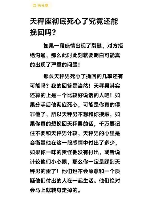 在感情的世界里,每个人都有自己的独特性格和处理方式。其中,处女座男生以其严谨、细心、追求完美的特点而闻名。然而,当他们决定放弃一段感情时,是否还有挽回的可能呢?这是一个值得我们深入探讨的问题。