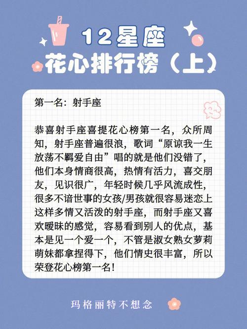 首先,我们要明确的是,花心并不是所有星座男的共性,每个星座男都有他们独特的性格和魅力。然而,根据星座学的理论,以下几个星座男被认为是最花心的。