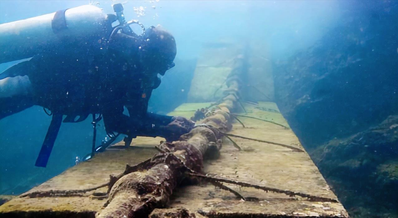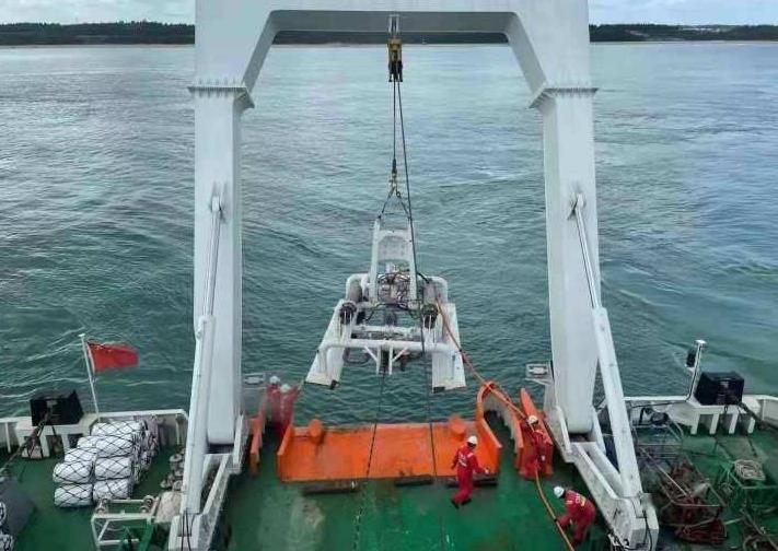 第四步就是对于光缆的沉放了。在移动确定好位置之后,由于光缆本身具备一定的重量。所以在确定好需要存放的位置之后,只需要拆下它身上捆绑的漂浮带,它便可以自己下沉到海底当中。