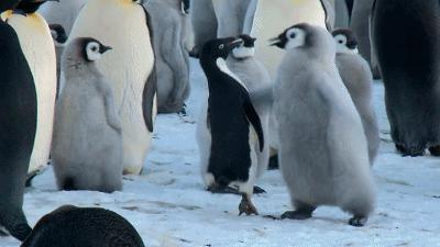 最后帝企鹅宝宝离开的时候甚至会有阿德利企鹅“护送”。(防止他们再回来)