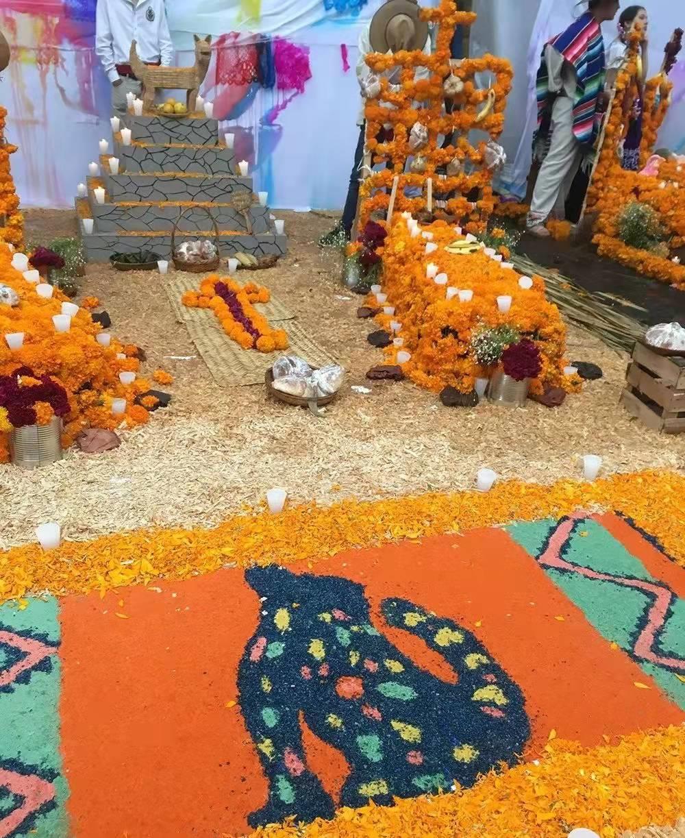 万寿菊是亡灵节必不可少的装饰物,他们相信像火焰一样的万寿菊可以指引回家的路。