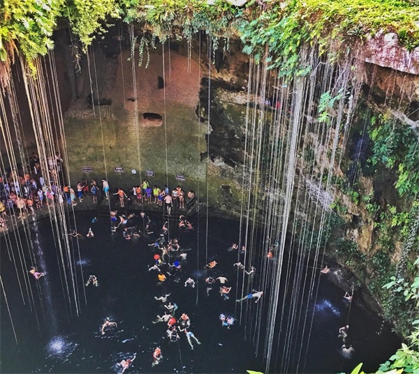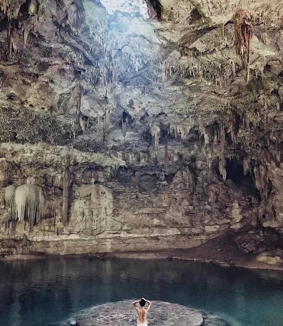 古时候玛雅人把溶洞天坑作为祭祀的地方,现如今已经变成了旅游胜地,长期受到地下水的侵蚀,在地底下才形成了大大小小、非常有特色的溶洞,有的溶洞顶层太薄弱,坍塌下来就形成了天坑。