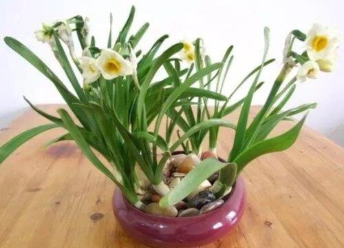 在水仙花生长的过程中,如果叶片过高,刚出芽的时候,就要适量用一些矮壮素,把药液兑到水里面,能够防止出现旺长的情况。
