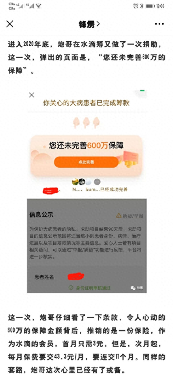 记者发现,上述稿件质疑水滴筹和水滴互助“以公益的名义”卖保险,用户在水滴筹平台捐款后,会被导流至水滴保险商城,在不知情的情况下被诱导购买其旗下的保险产品,导致退保损失;