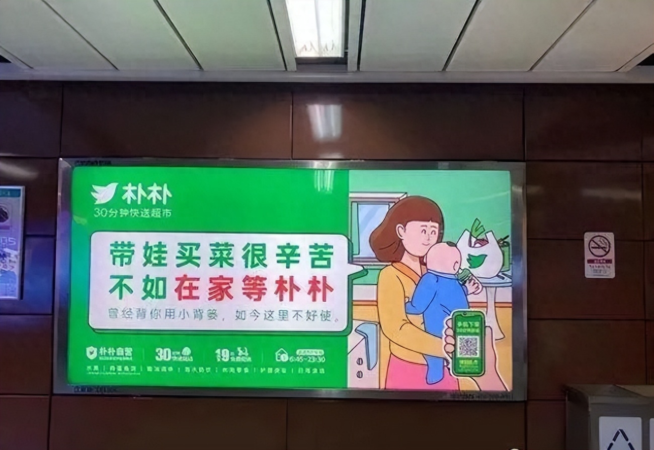 因此在朴朴成立初期,他运用“传媒+生鲜”行业经验,在人流量最大的地方打广告,简单、粗暴、却有效。