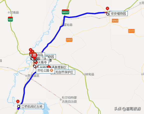 江桥抗战纪念地自驾至依安植物园交通路线:江桥抗战纪念地-抗战路-双嫩高速公路-伊齐高速公路-333国道-依安植物园。全长216.6公里,车程2小时22分钟。