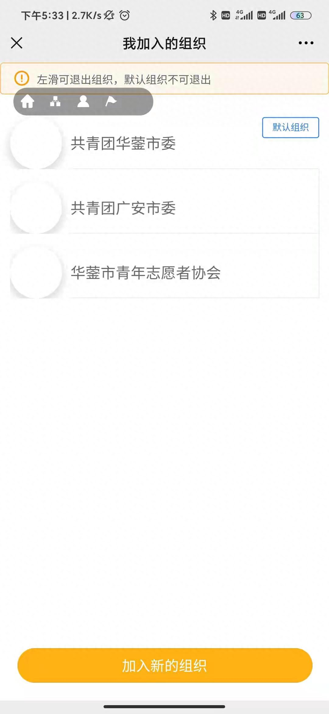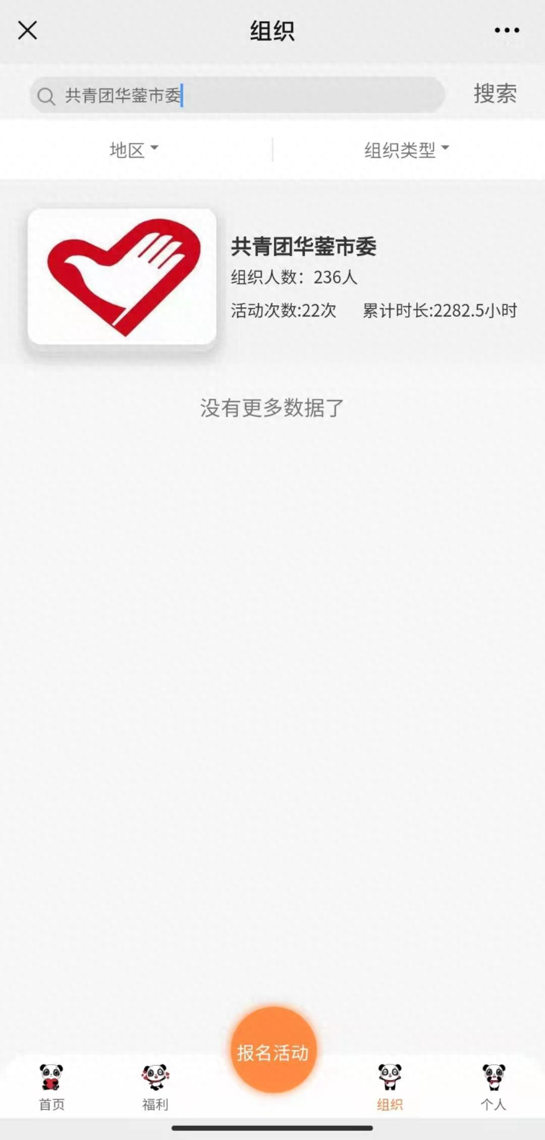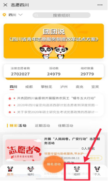 进入志愿四川平台首页后,点击下方“组织”按钮。