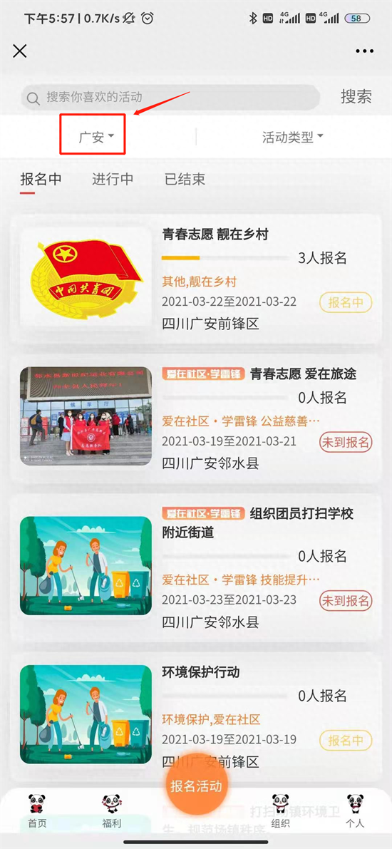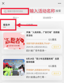 进入活动页面,显示为“报名中”的活动均可报名参加。