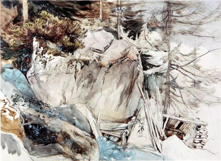约翰·罗斯金《Mountain Rock and Alpine Rose》,1845年