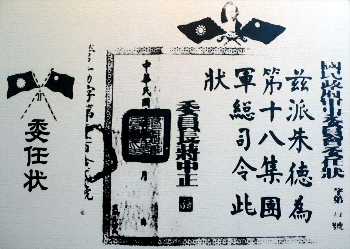 国民政府军事委员会颁发朱德的第十八集团军总司令委任状