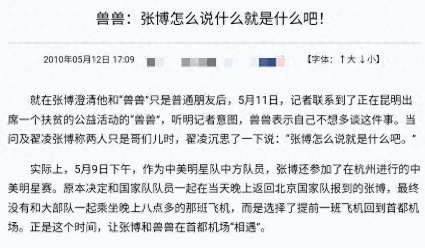 在2010年5月,媒体就曝出了她与新晋国家篮球队员张博在机场碰头,并举止亲密一起离开的消息,两人相恋的传闻也随之出现。