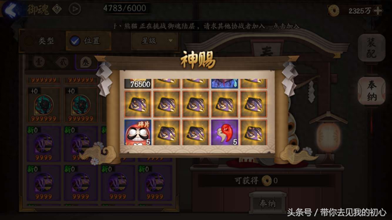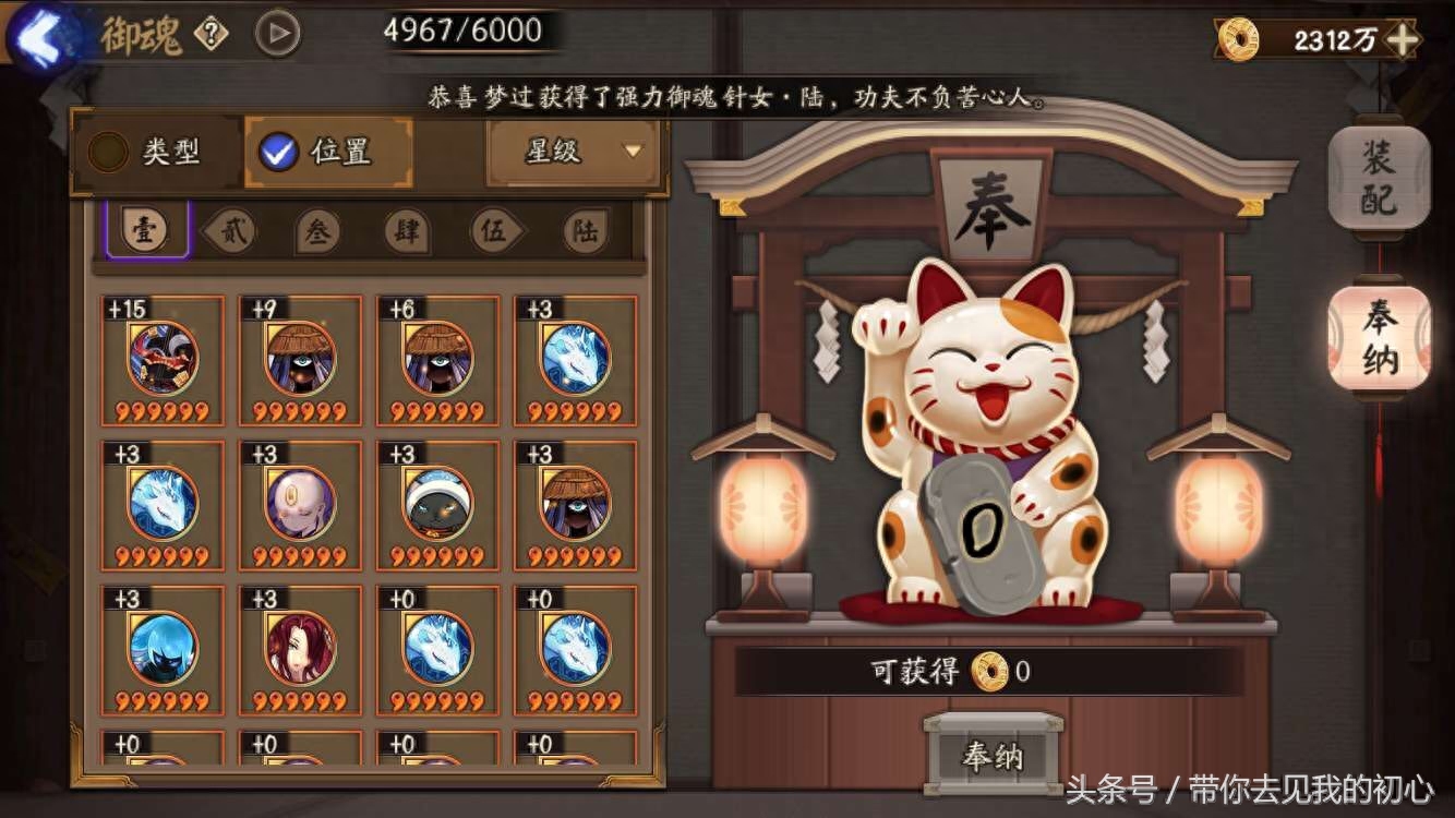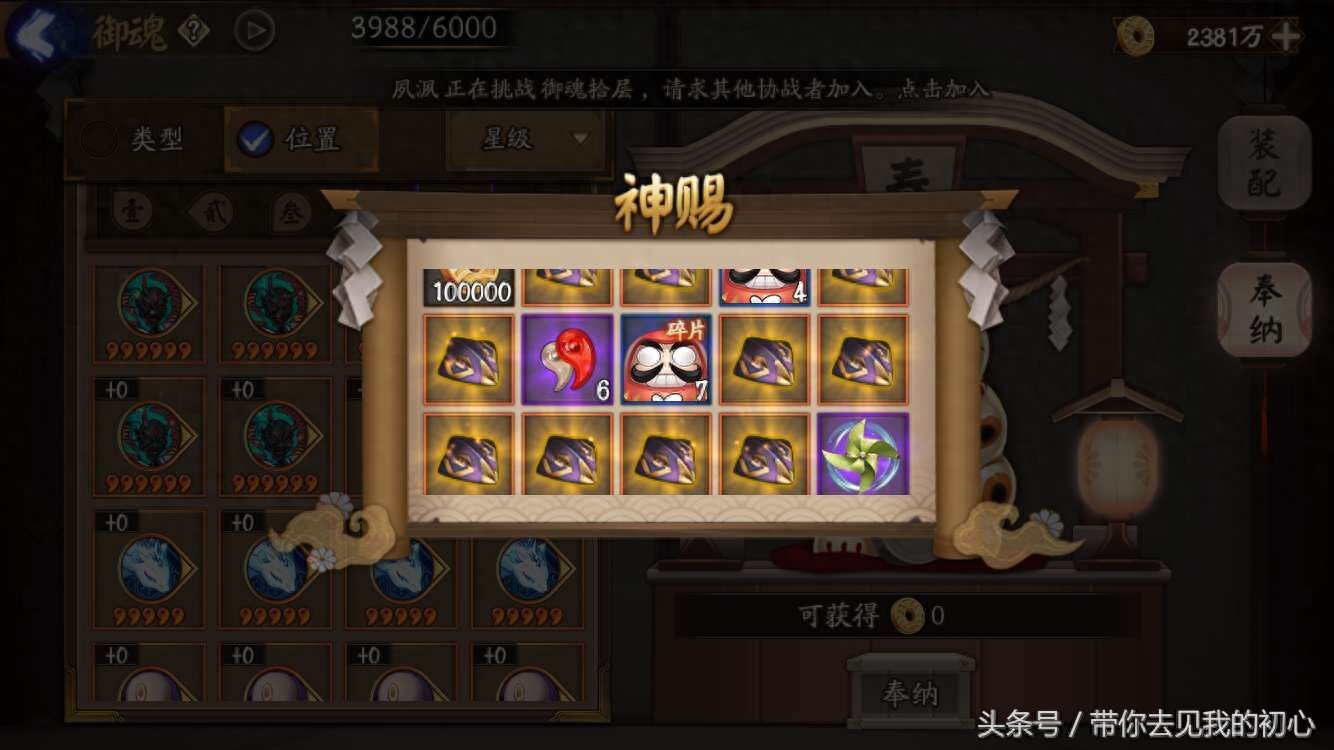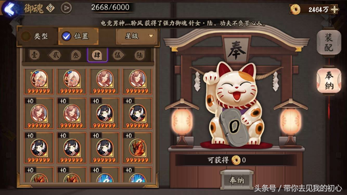 勉强了凑了两百个,可以换四次了,但是不知道上次看小编帖子的阴阳师们还记不记得,御札换了五个破势六号位,结果全部翻皮水,三个生命之王两个防御之王,气的我那个小心肝哟!