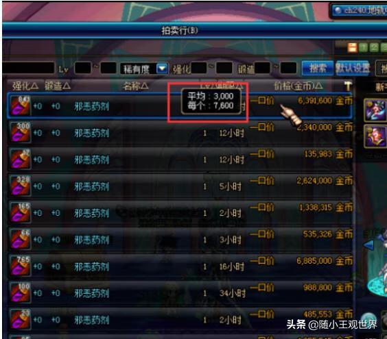 5.比如、邪恶药剂平均价3000,你可以在3000的时候收,在拍卖行没什么货的时候出,虽然不怎么好卖,但是还是有人买的,50个邪恶药剂成本15万除去手续费还赚了18万左右。只要赚钱,什么都可以倒卖。