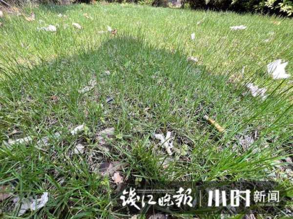 小区3幢2单元门口附近的草坪里有很多烟头。