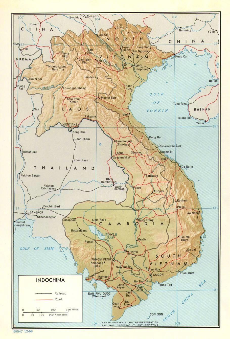 印度支那(Indo-China)是个很粗糙的殖民地理概念,就是指中南半岛,原始出处来自于法属印度支那(Indochine franaise),法兰西帝国在东南亚的殖民地领土,由老挝,柬埔寨和三个居民以越南人为主的地区(东京,安南与交趾,或按越南语翻译也称北圻,中圻和南圻),以及位于中国广东雷州半岛的湛江租借地组成。法国也是个老牌的帝国主义和殖民主义列强。从19世开始,就在东南亚一代扩张。在1882年,法国军队攻破了河内城,迫使越南签下城下之盟,相继签了第一二次《顺化条约》,彻底使其从中国清朝众多藩属国中分离了出去,逐渐沦为了法国的殖民地。法国也就借此为据点,不断扩大其在东南亚地区的殖民统治范围,1887年,法国殖民者将越南三部分(安南、交趾支那和东京)与柬埔寨联合组成法属“印度支那联邦”。法国总督为联邦首脑,驻河内。1893年老挝也被并入联邦为保护领。