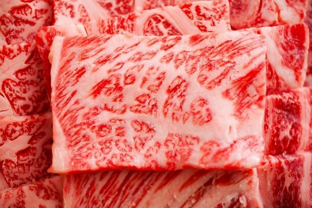 以它的大理石花纹而闻名,相较于其他品种的肉牛,日本和牛的油花多、密而平均,肉质呈粉红色。