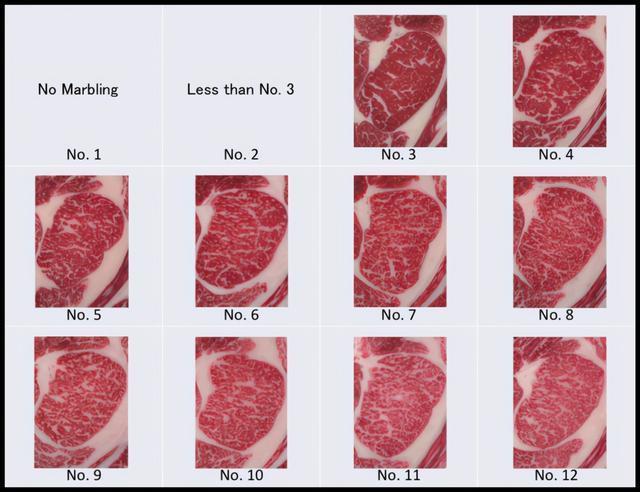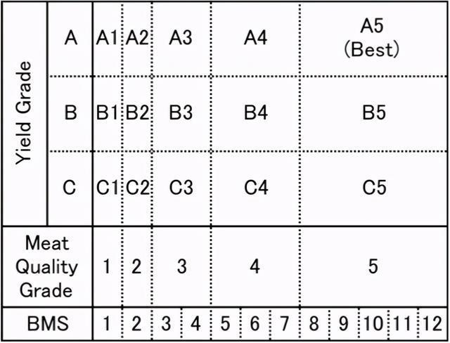 其中脂肪交杂程度(BMS)还单独分成了12个等级。