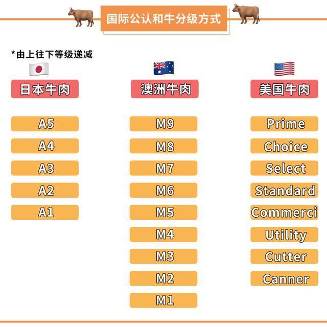 每个国家对牛肉的评级都是不同的。