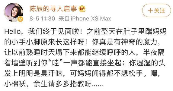 再次恭喜陈辰顺利生下两人的爱情结晶