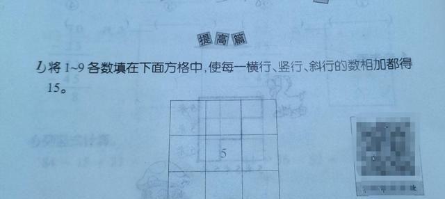 这道题来自二年级数学(上)寒假作业,填数:将1~9各数填在下面方格中,便每一横行、竖行、斜行的数相加都得15,不会填,怎么办?