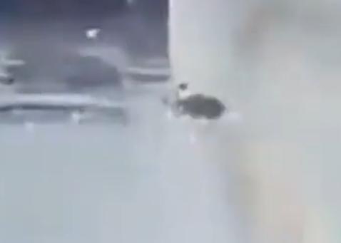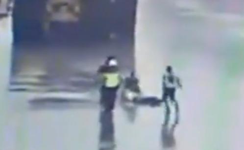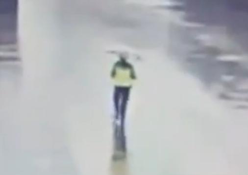 分享的视频显示,当时这名男子正撑着伞在雨中行走,在这名保安进入画面约15秒后,他所在的位置突然出现爆炸和四溅的金色火花。视频显示被击中后男子躺在潮湿的地面上无法起身,人们见状向他身边跑去试图提供帮助。