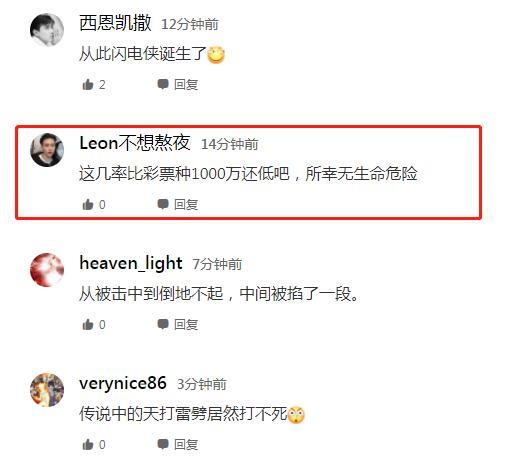 网友评论:这几率比彩票种1000万还低吧,所幸无生命危险。