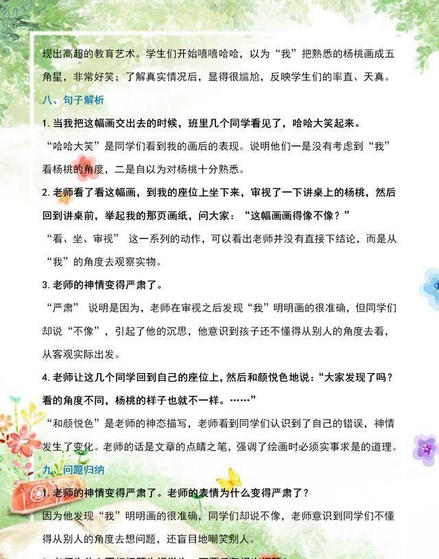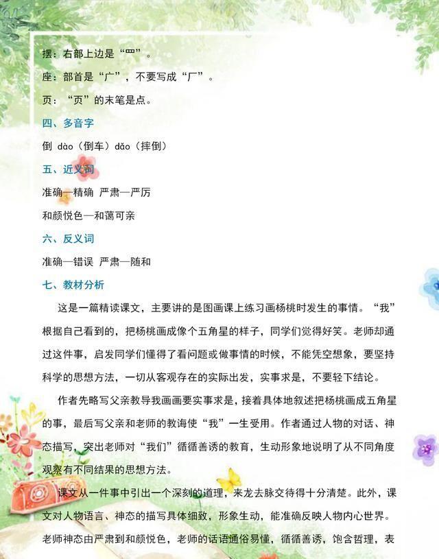 关于《画杨桃》这篇课文的其他重点知识,我们也在资料中有详细讲解,同学们可以好好看一看以下这份资料,把这些知识掌握好,这篇课文就算学好了!