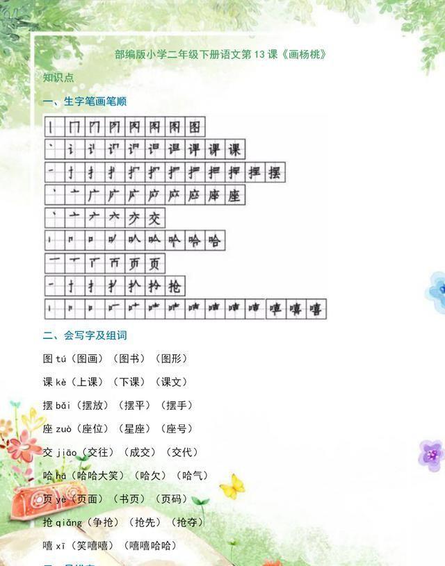 二年级下册语文第13课《画杨桃》,老师整理知识精华,帮孩子学习