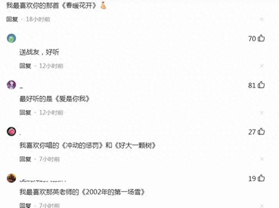 “我喜欢你唱的《冲动的惩罚》和《好大一棵树》”